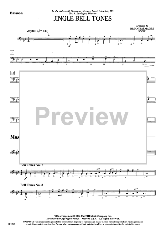 Digital Sheet Music for Jingle Bell Tones - Bassoon by Brian Balmages scored for Concert Band; id:443172
