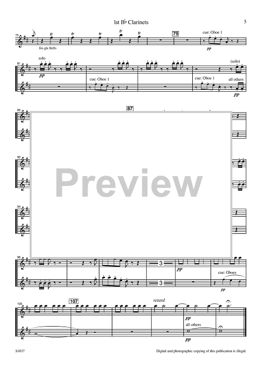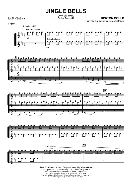 Digital Sheet Music for Jingle Bells for Concert Band - 1st Bb Clarinets by Morton Gould, James Pierpont scored for Concert Band; id:506439