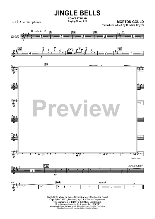 Digital Sheet Music for Jingle Bells for Concert Band - 1st Eb Alto Saxophones by Morton Gould, James Pierpont scored for Concert Band; id:506419