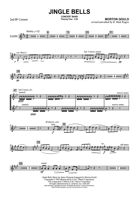 Digital Sheet Music for Jingle Bells for Concert Band - 2nd Bb Cornets by Morton Gould, James Pierpont scored for Concert Band; id:506424