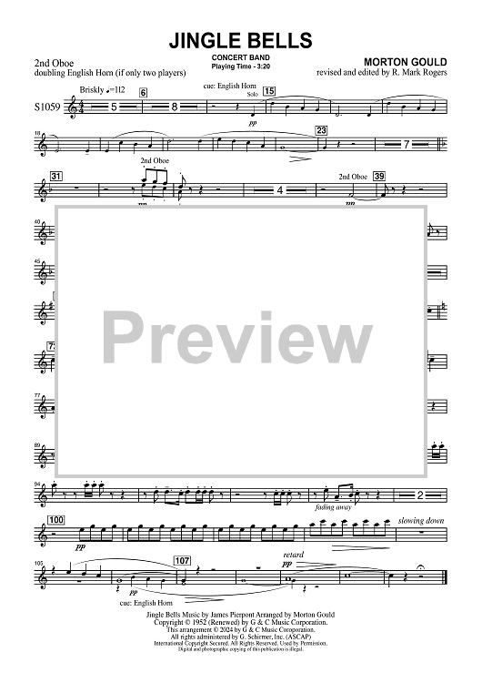 Digital Sheet Music for Jingle Bells for Concert Band - 2nd Oboe by Morton Gould, James Pierpont scored for Concert Band; id:506410