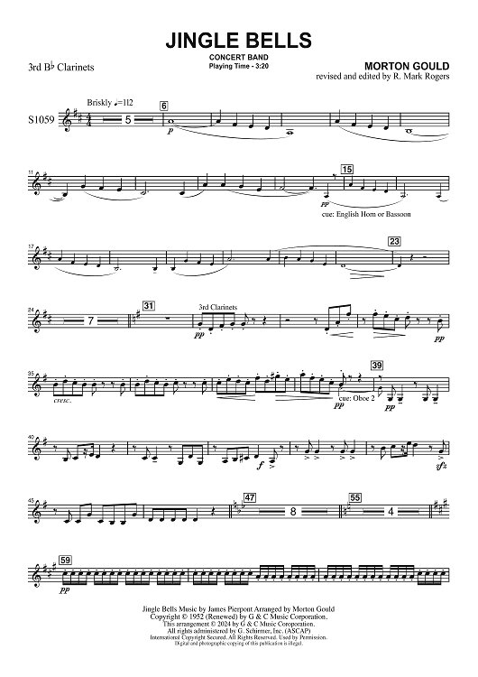 Digital Sheet Music for Jingle Bells for Concert Band - 3rd Bb Clarinets by Morton Gould, James Pierpont scored for Concert Band; id:506414