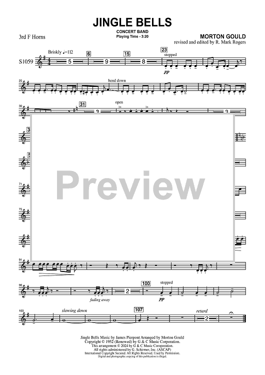 Digital Sheet Music for Jingle Bells for Concert Band - 3rd F Horns by Morton Gould, James Pierpont scored for Concert Band; id:506429