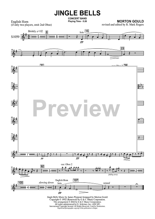 Digital Sheet Music for Jingle Bells for Concert Band - English Horn by Morton Gould, James Pierpont scored for Concert Band; id:506411
