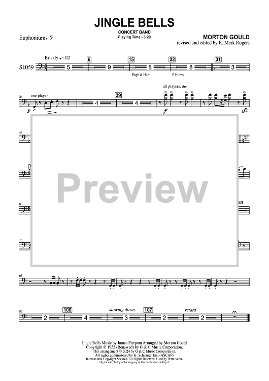 Digital Sheet Music for Jingle Bells for Concert Band - Euphoniums BC by Morton Gould, James Pierpont scored for Concert Band; id:506435