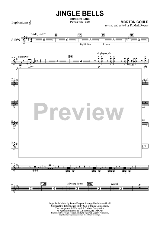 Digital Sheet Music for Jingle Bells for Concert Band - Euphoniums TC by Morton Gould, James Pierpont scored for Concert Band; id:506434