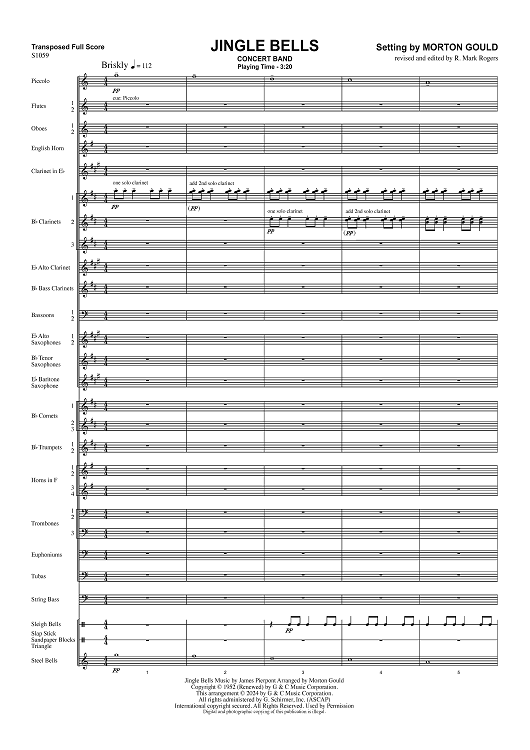 Digital Sheet Music for Jingle Bells for Concert Band - Full Score by Morton Gould, James Pierpont scored for Concert Band; id:506405