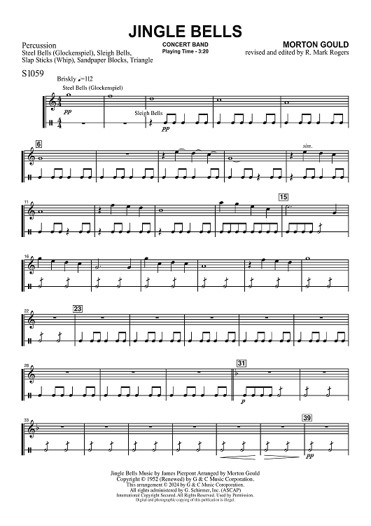 Digital Sheet Music for Jingle Bells for Concert Band - Percussion by Morton Gould, James Pierpont scored for Concert Band; id:506438