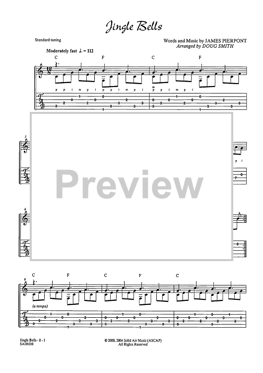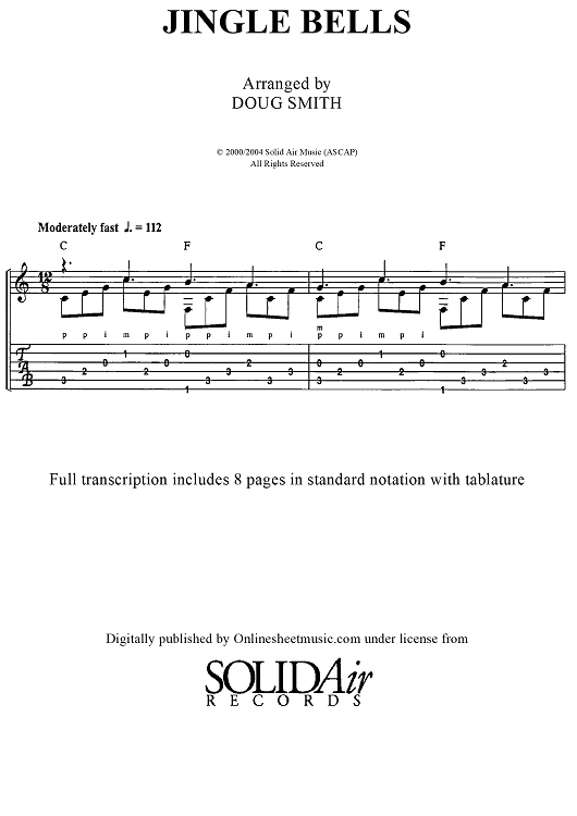 Digital Sheet Music for Jingle Bells (No MP3) by James Pierpont, Doug Smith scored for Guitar Tab; id:451563