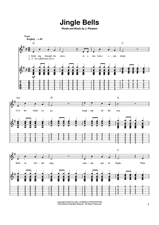 Digital Sheet Music for Jingle Bells by James Pierpont scored for Guitar Tab; id:374246