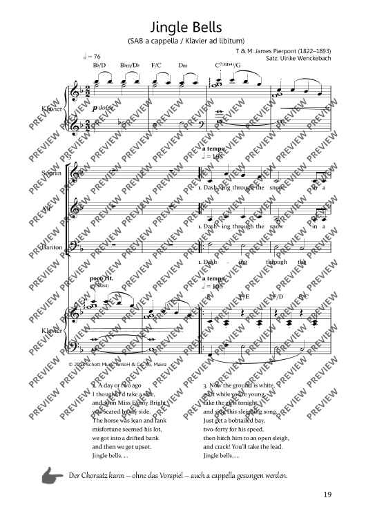 Digital Sheet Music for Jingle Bells by James Pierpont, Ulrike Wenckebach scored for Mixed Choir (sab) And Piano; id:499141