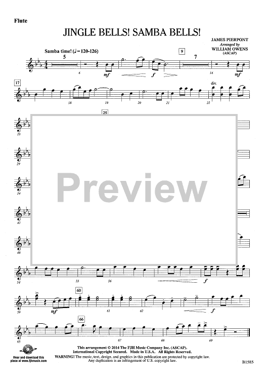 Digital Sheet Music for Jingle Bells! Samba Bells! - Flute by James Pierpont, William Owens scored for Concert Band; id:443390