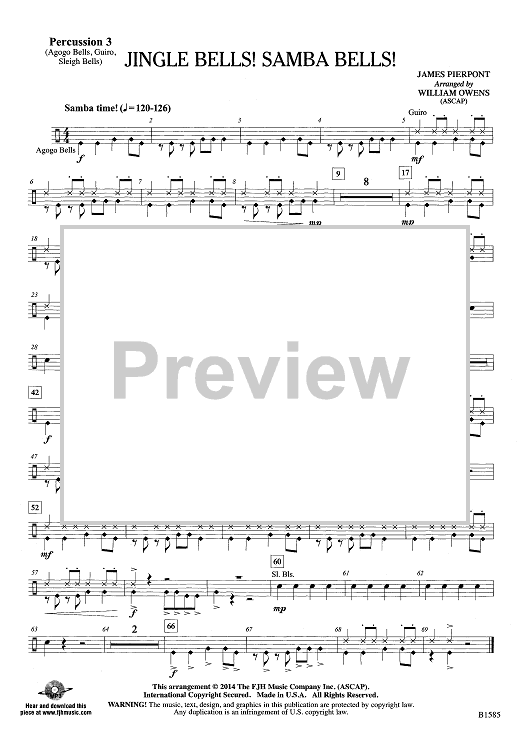 "Jingle Bells! Samba Bells! - Percussion 3" Sheet Music by James Pierpont