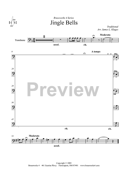Digital Sheet Music for Jingle Bells - Trombone by James Klages, Traditional scored for Brass Quintet; id:357948