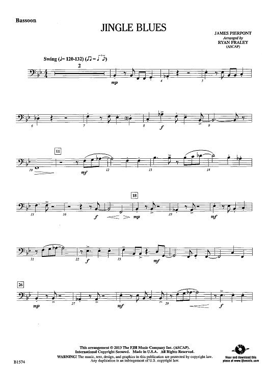 Digital Sheet Music for Jingle Blues - Bassoon by James Pierpont, Ryan Fraley scored for Concert Band; id:442261
