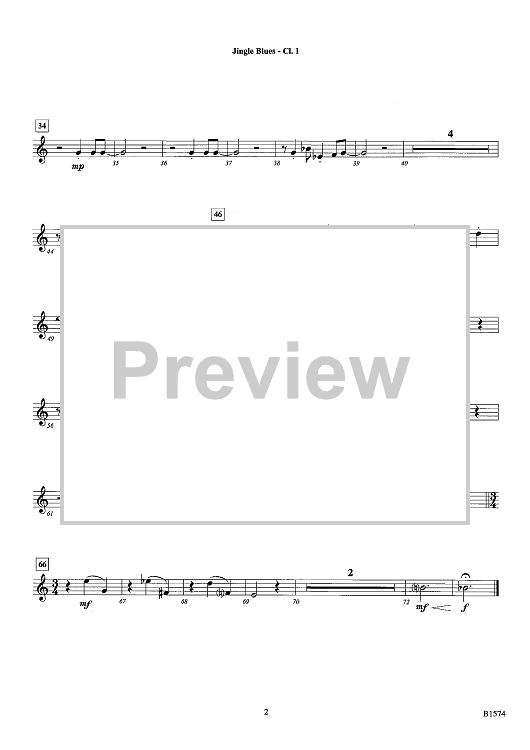 "Jingle Blues - Bb Clarinet 1" Sheet Music by James Pierpont