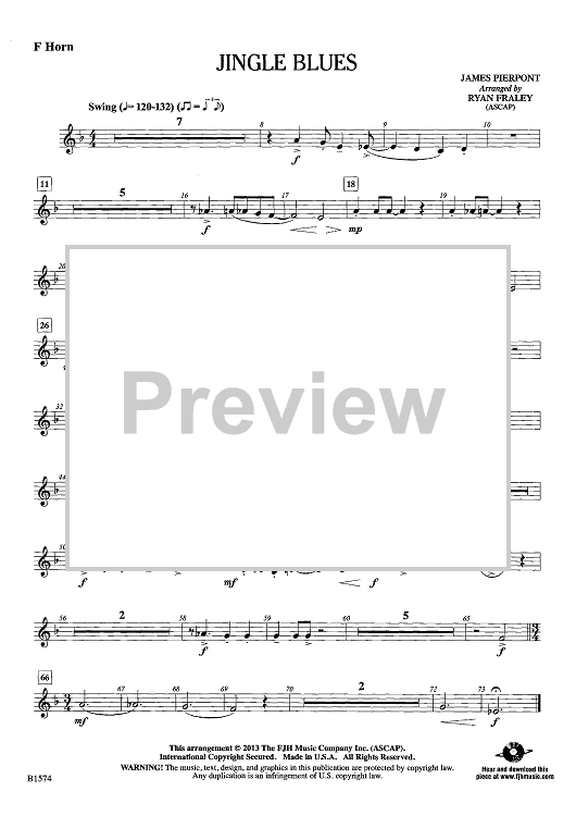 Digital Sheet Music for Jingle Blues - F Horn by James Pierpont, Ryan Fraley scored for Concert Band; id:442271