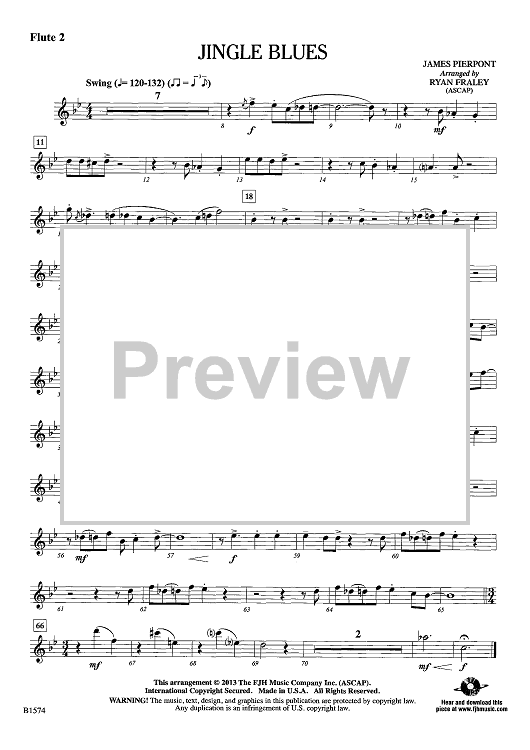 Digital Sheet Music for Jingle Blues - Flute 2 by James Pierpont, Ryan Fraley scored for Concert Band; id:442259