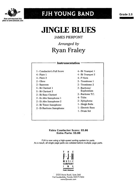 Digital Sheet Music for Jingle Blues - Score Cover by James Pierpont, Ryan Fraley scored for Concert Band; id:442257