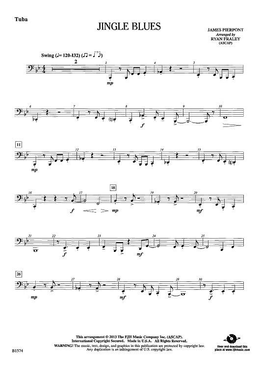 Digital Sheet Music for Jingle Blues - Tuba by James Pierpont, Ryan Fraley scored for Concert Band; id:442276