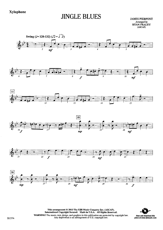 Digital Sheet Music for Jingle Blues - Xylophone by James Pierpont, Ryan Fraley scored for Concert Band; id:442277