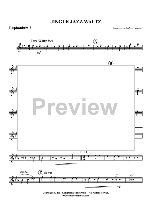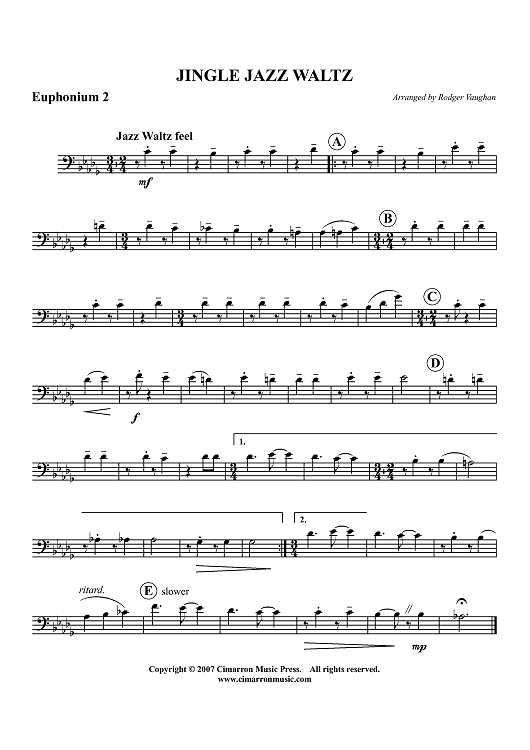 Digital Sheet Music for Jingle Jazz Waltz - Euphonium 2 BC/TC by Rodger Vaughan, Traditional scored for Tuba Quartet; id:413569
