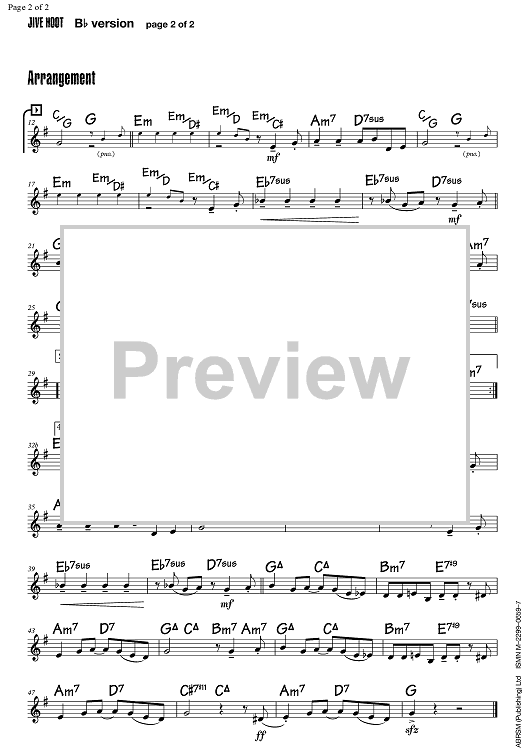 Digital Sheet Music for Jive Hoot by , Bob Brookmeyer, Huw Warren scored for B-flat Lead Sheet; id:355613
