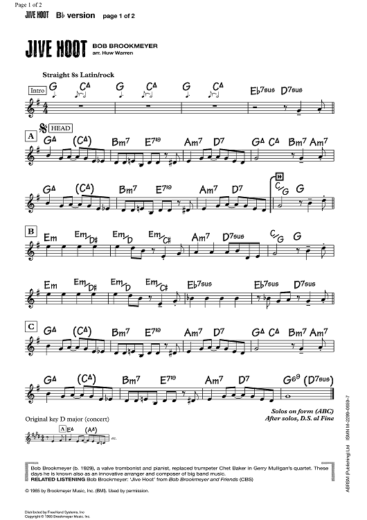 "Jive Hoot" Sheet Music by Bob Brookmeyer