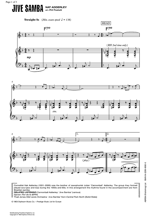 Digital Sheet Music for Jive Samba by , Nat Adderley, Phil Peskett scored for Trombone 4/Piano; id:355512