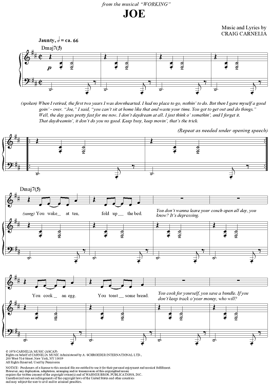 Digital Sheet Music for Joe by Craig Carnelia scored for Piano/Vocal/Chords; id:273329