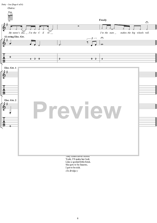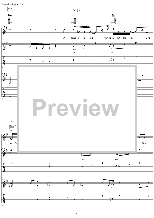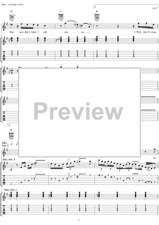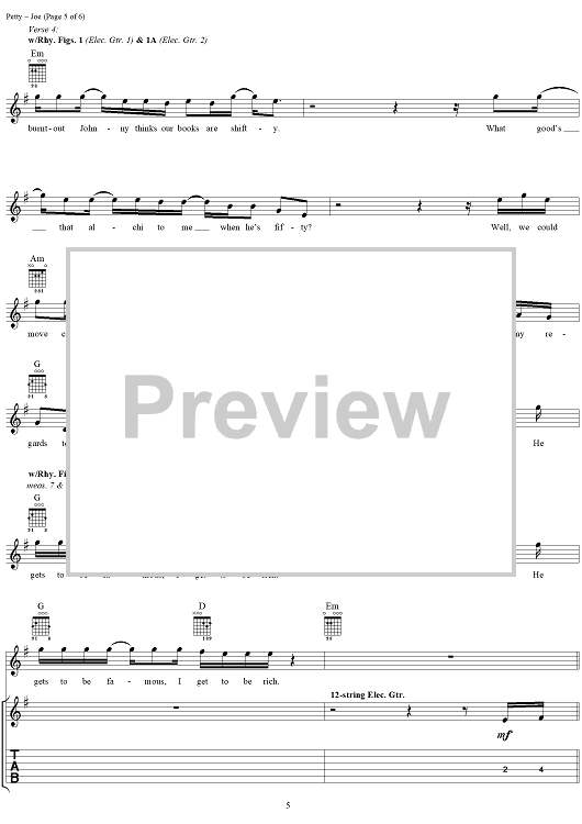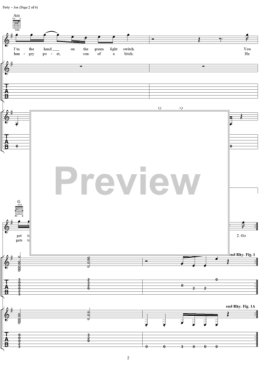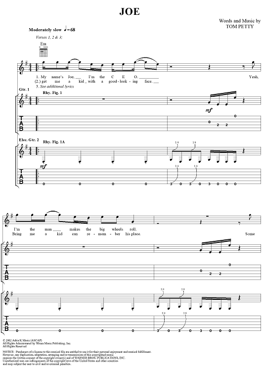 "Joe" Sheet Music by Tom Petty and The Heartbreakers