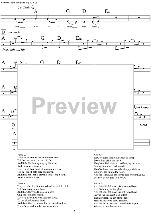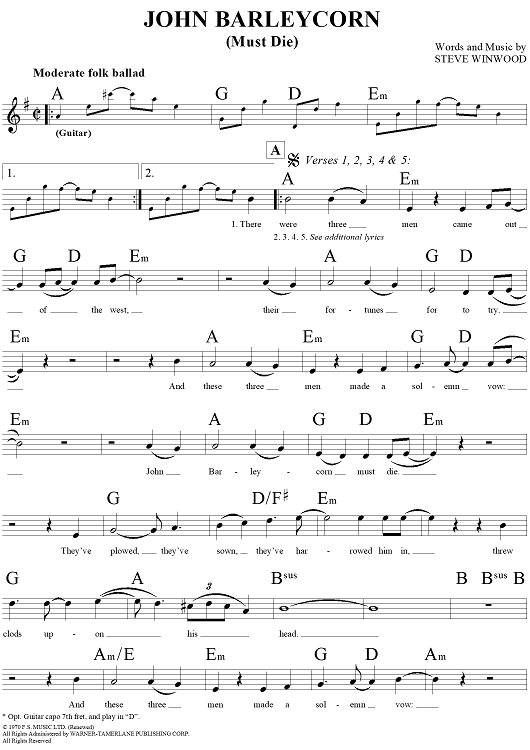 Digital Sheet Music for John Barleycorn (Must Die) by Traffic, Steve Winwood scored for Lead Sheet; id:293973