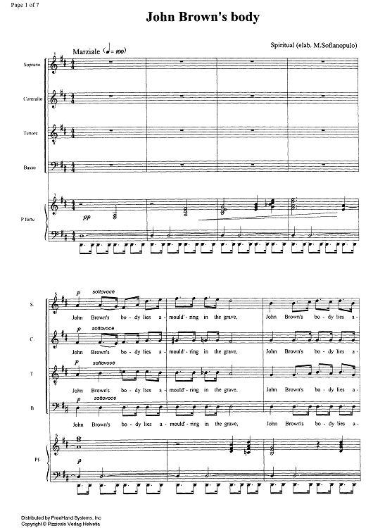 Digital Sheet Music for John Brown's Body by , Marco Sofianopulo, Traditional scored for Choir/Piano; id:328913