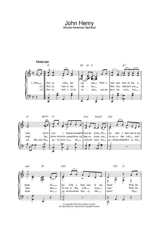 Digital Sheet Music for John Henry by scored for Piano/Vocal/Chords; id:378614