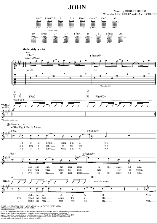 Digital Sheet Music for John by Robert DeLeo, David Coutts, Eric Kretz, Talk Show scored for Guitar Tab/Vocal; id:124381