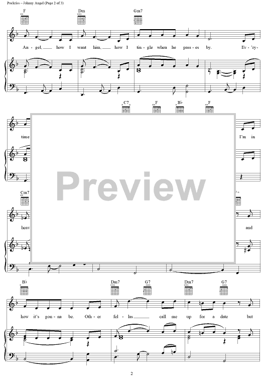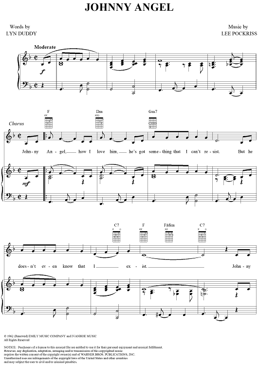 Digital Sheet Music for Johnny Angel by Lyn Duddy, Shelly Fabares, Lee Pockriss scored for Piano/Vocal/Chords; id:114085