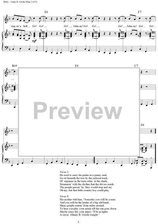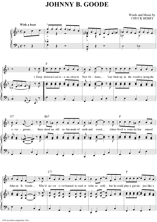 Digital Sheet Music for Johnny B. Goode by Chuck Berry scored for Piano/Vocal/Chords; id:380237