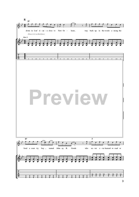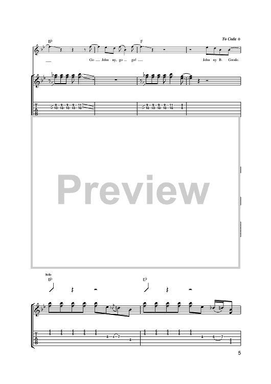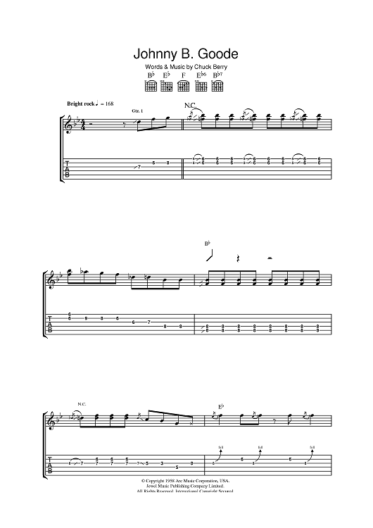 Digital Sheet Music for Johnny B. Goode by Chuck Berry scored for Guitar Tab; id:393465