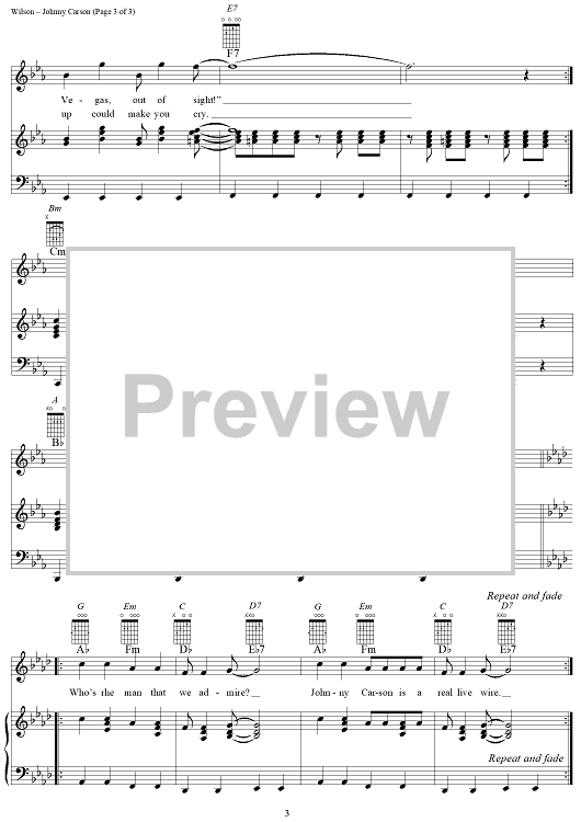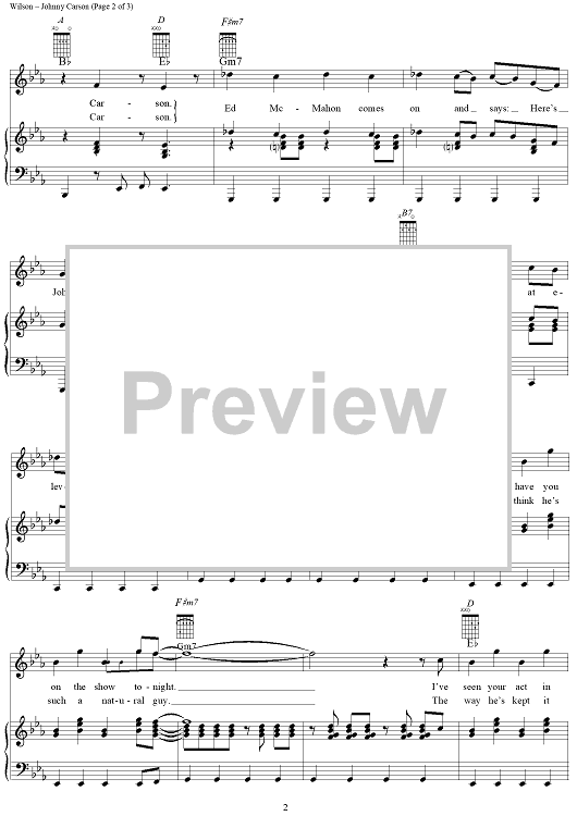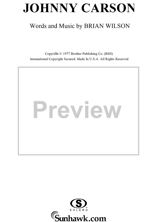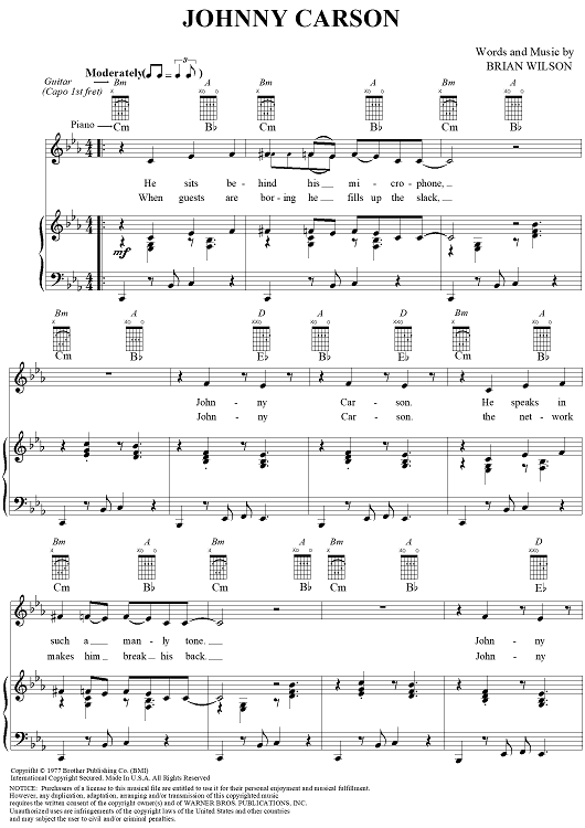 Digital Sheet Music for Johnny Carson by Brian Wilson, The Beach Boys scored for Piano/Vocal/Chords; id:264015