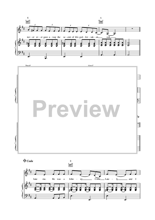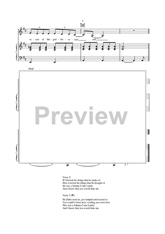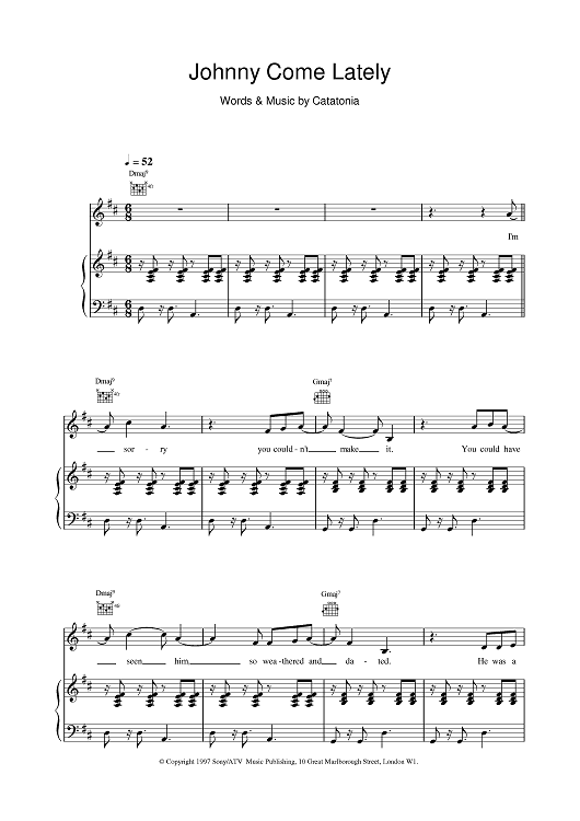 Digital Sheet Music for Johnny Come Lately by Catatonia scored for Piano/Vocal/Chords; id:379914