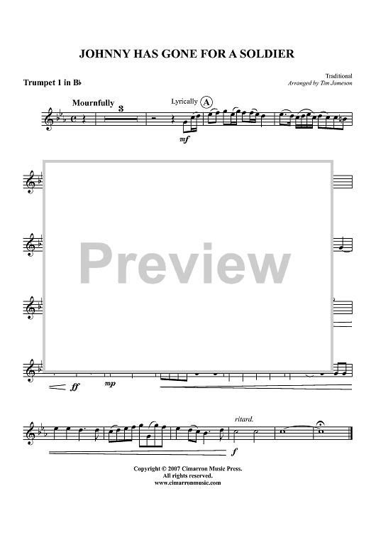 "Johnny Has Gone for a Soldier - Trumpet 1 in B-flat" Sheet Music by Traditional