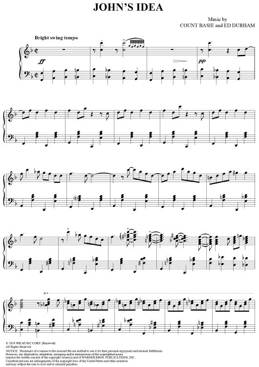 Digital Sheet Music for John's Idea by Count Basie, Eddie Durham scored for Piano Solo; id:276398