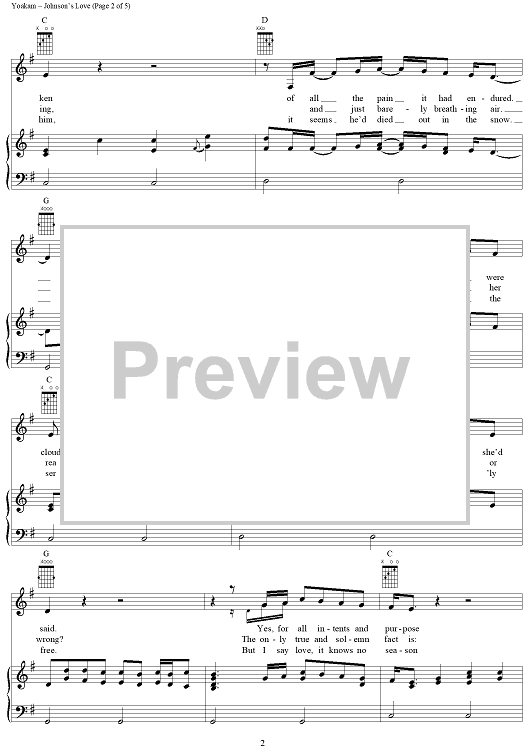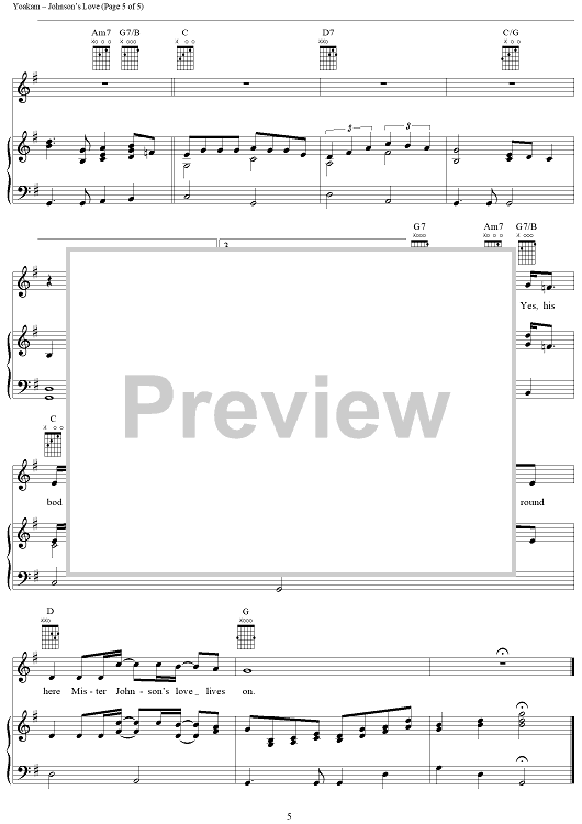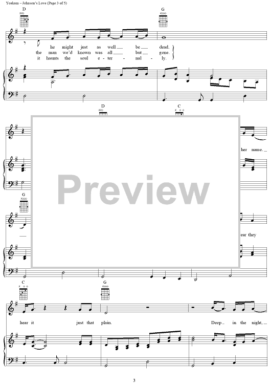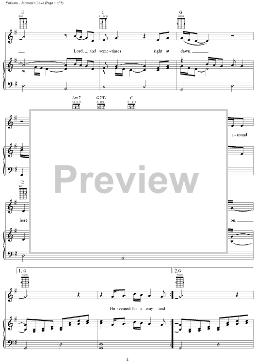 Digital Sheet Music for Johnson's Love by Dwight Yoakam scored for Piano/Vocal/Chords; id:220397