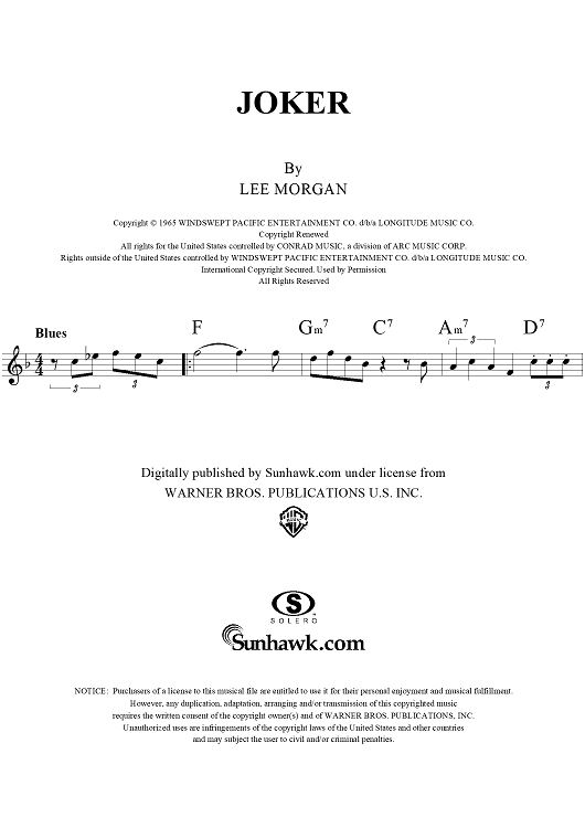 Digital Sheet Music for Joker by Lee Morgan, Albert Morgan scored for Lead Sheet; id:252509