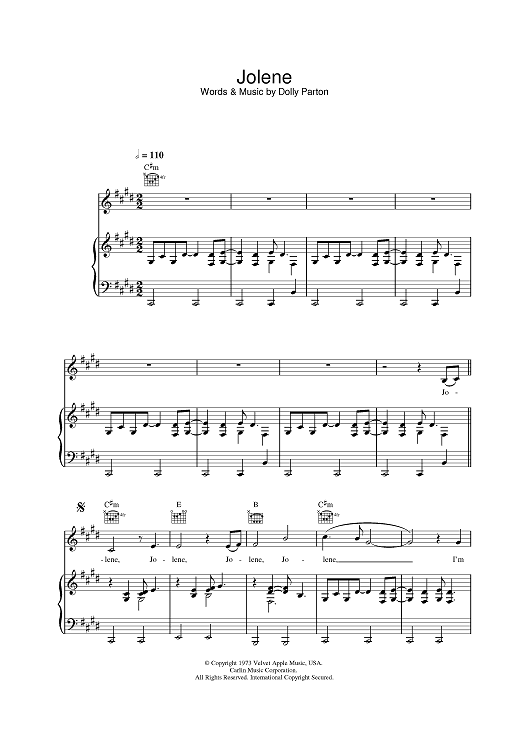 Digital Sheet Music for Jolene by Dolly Parton scored for Piano/Vocal/Chords; id:385992