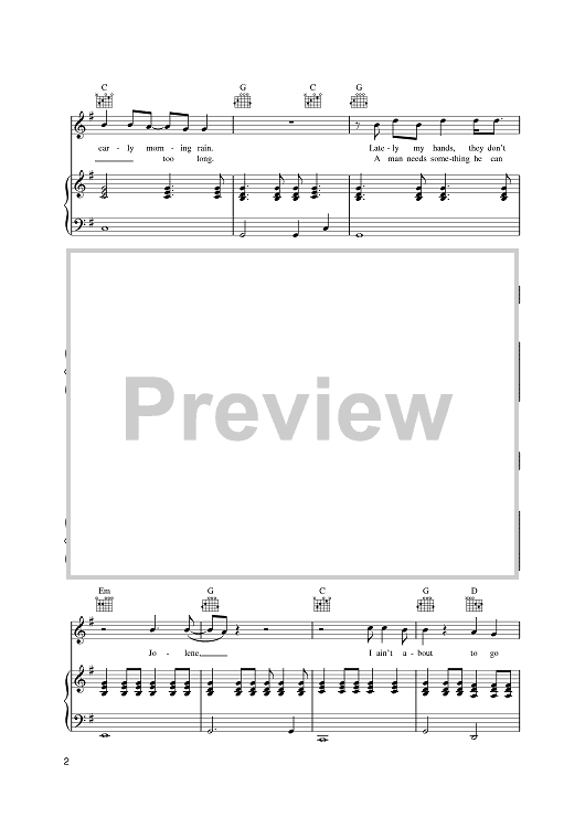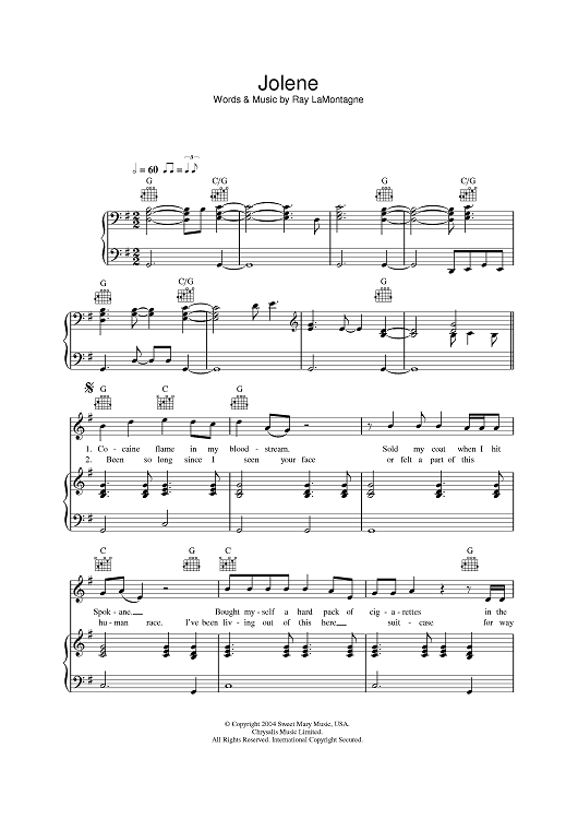 Digital Sheet Music for Jolene by Ray LaMontagne scored for Piano/Vocal/Chords; id:397069