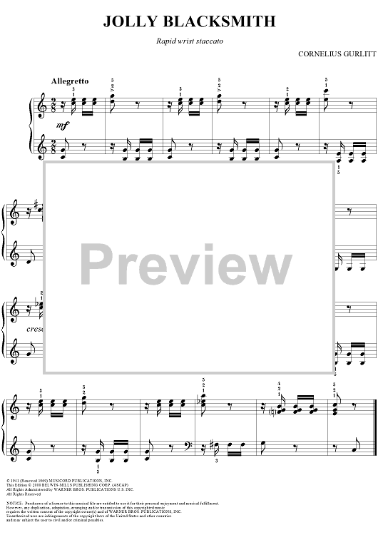 "Jolly Blacksmith" Sheet Music by Cornelius Gurlitt