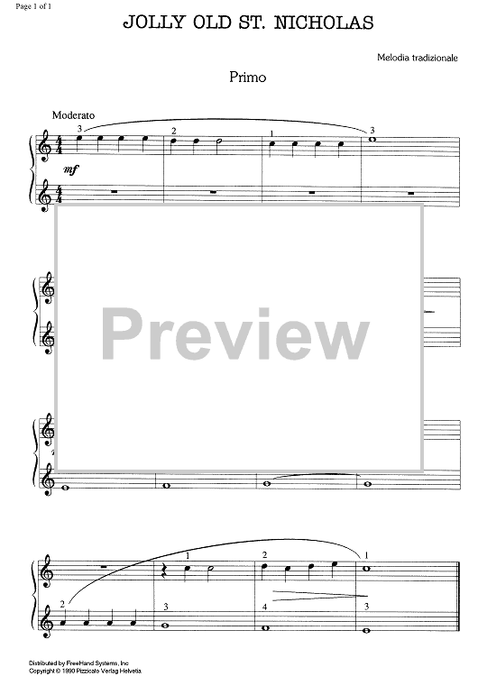 Digital Sheet Music for Jolly old S. Nicholas by Enrico Battistoni, Traditional scored for 1 Piano, 4 Hands; id:354424