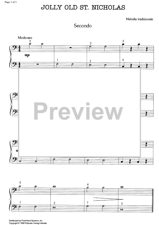 Digital Sheet Music for Jolly old S. Nicholas by Enrico Battistoni, Traditional scored for 1 Piano, 4 Hands; id:354425
