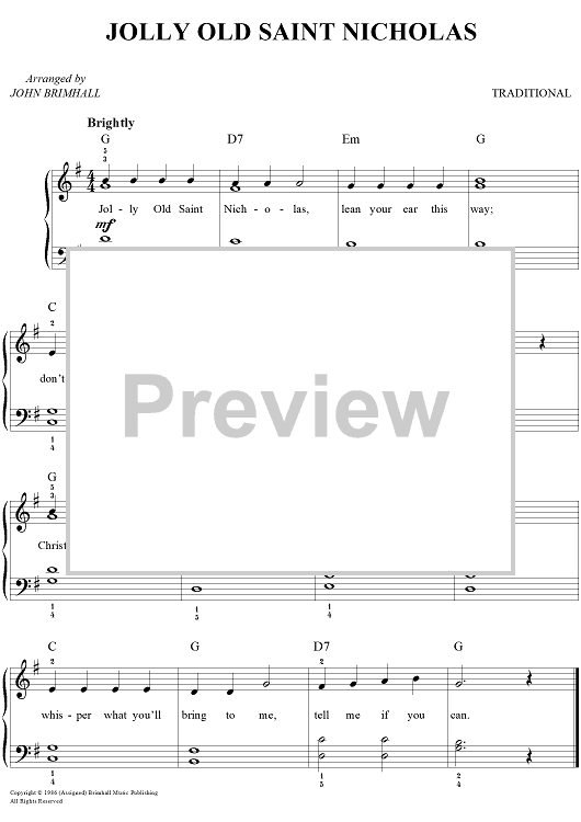 Digital Sheet Music for Jolly Old Saint Nicholas by John Brimhall, Traditional scored for Easy Piano/Vocal/Chords; id:450550
